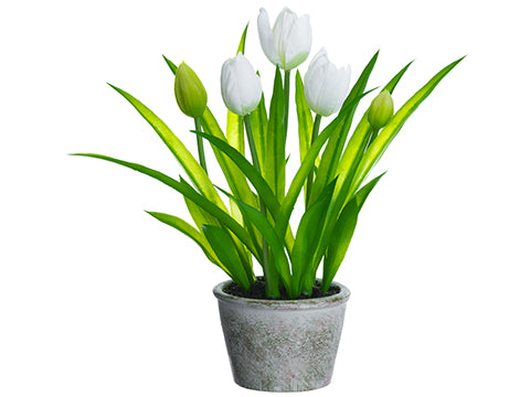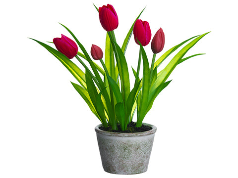13" Tulip in Paper Mache Pot Pink