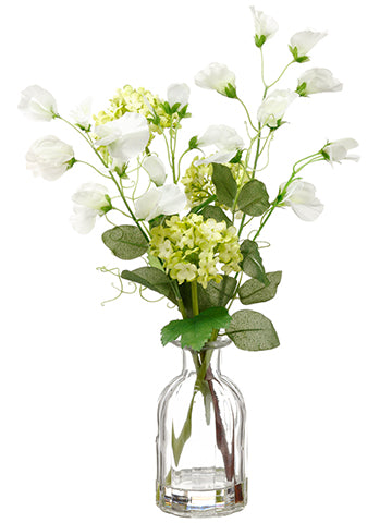 15" Sweet Pea/Snowball in Glass Vase Green Pink