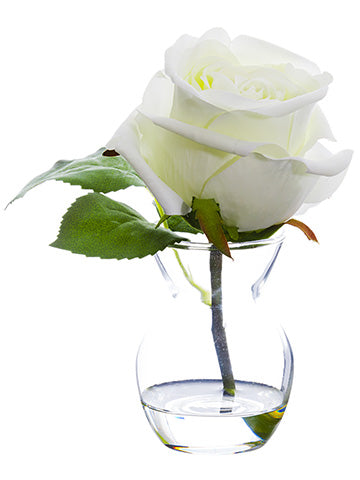 6" Rose in Glass Vase Pink Green