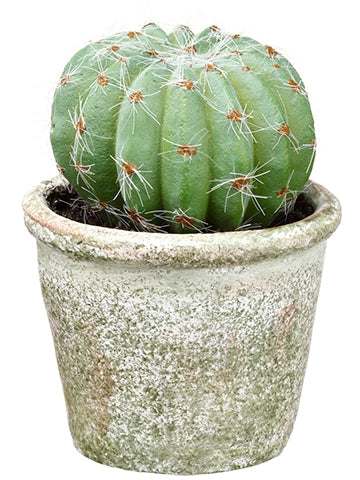 Barrel Cactus in Paper Mache Pot Green