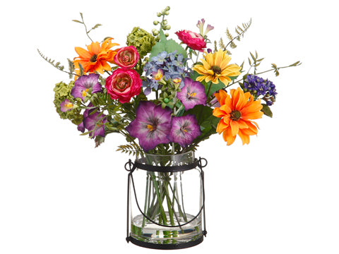 Daisy/Ranunculus/Morning Glory in Glass Vase Mixed