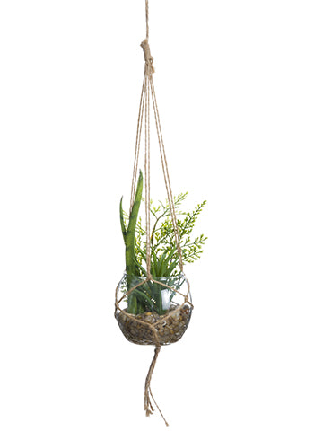 Hanging Succulent Garden in Glass Vase Green (pack of 6)