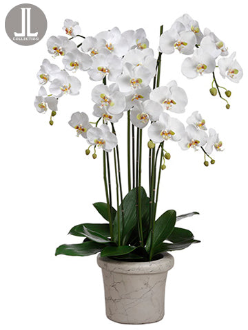 Phalaenopsis Orchid Plant in Marble Look Pot White