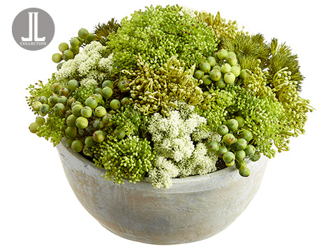 Sedum/Berry Arrangement in Clay Pot Green Cream