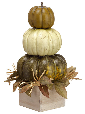 Stacking Pumpkin in Wood Box Green Cream (pack of 6)