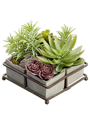- Succulent Garden in Cement Pot With Metal Rack Two Tone Green