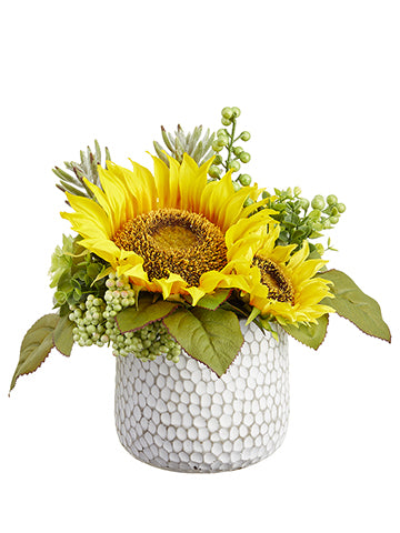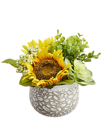 Sunflower/Echeveria Arrangement in Cement Pot Yellow Green (pack of 6)