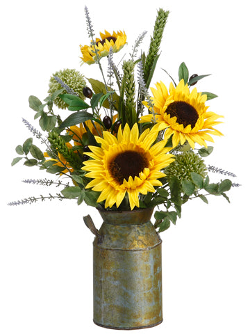 - Sunflower/Lavender/Olive in Tin Bucket Yellow Green