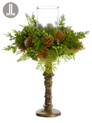 - Cedar/Berry/Pine Cone Centerpiece With Glass Candleholder Green Gold