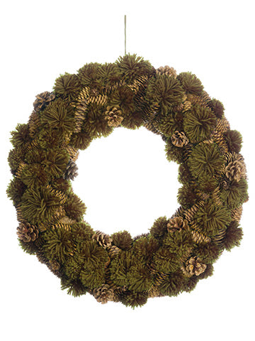 Pompom/Pine Cone Wreath Green Brown (pack of 2)