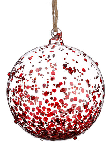 Sequin Glass Ball Ornament Red Clear (pack of 6)