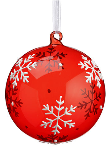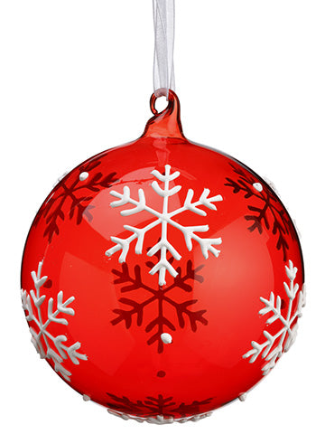 Snowflake Glass Ball Ornament Red White