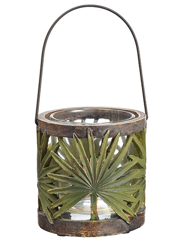 3.5"Hx3.5"D Palm Leaf Candleholder With Glass