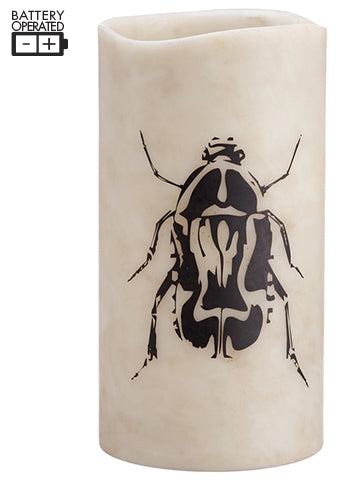 - Battery Operated Bug Faux Candleholder with Light Beige Black