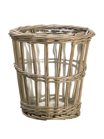 Willow Basket w/Glass Vase Gray
