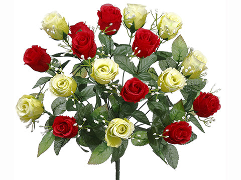 16.5" Rose Bud/Baby's Breath Bush x18 Beauty Pink (pack of 12)