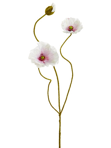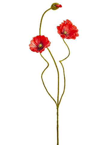 24.4" Poppy Spray With 2 Flowers And One Bud