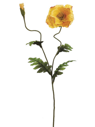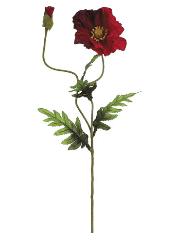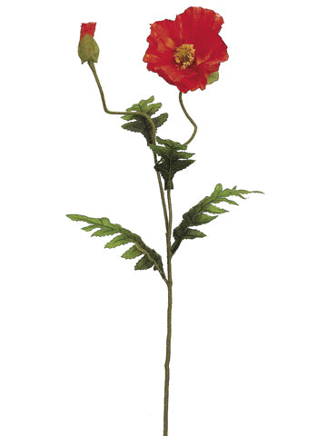 28" Poppy Spray x2 with 1 Flower and 1 Bud