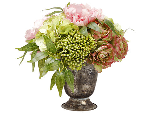 Peony/Hydrangea/ Sedum in Tin Pot Green Pink (pack of 1)