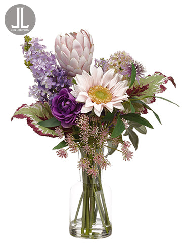 Rose/Sunflower/Protea in Glass Vase Pink Lavender